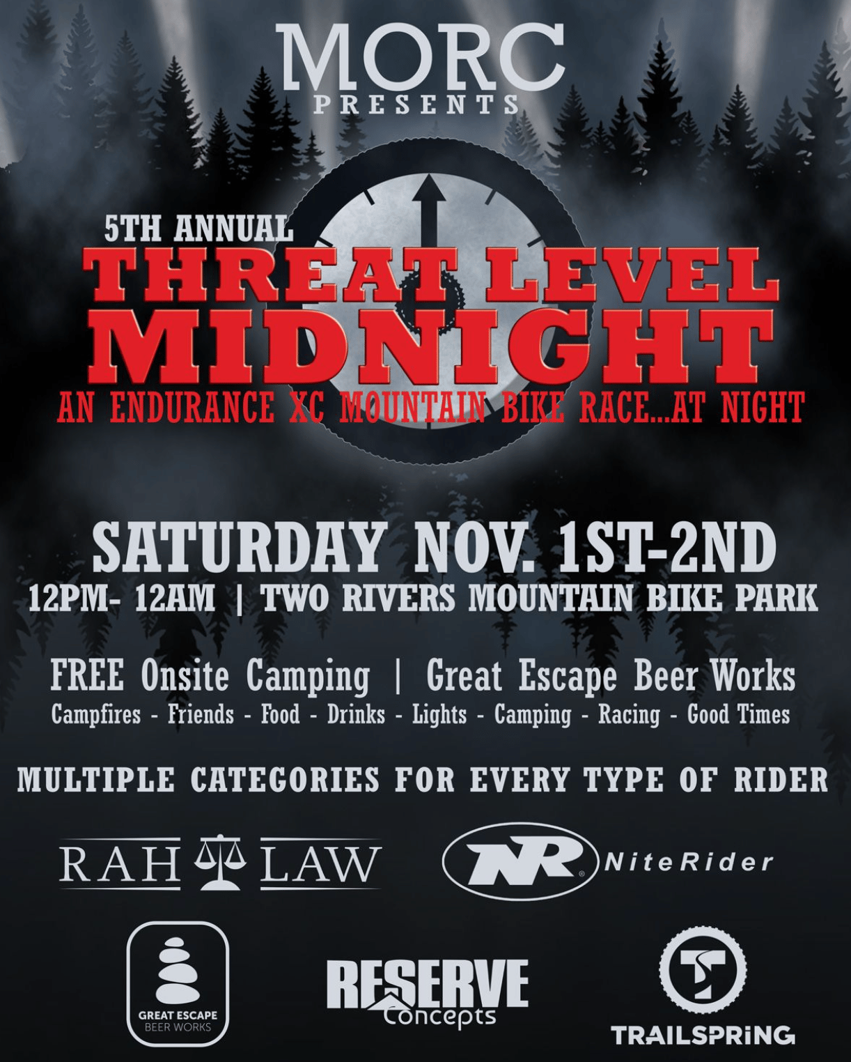 Jam packed weekend with racing, camping, and chilling with your local mtb buds. Enjoy beverages from Great Escape Brewing, Casey's Pizza, and breakfast provided by MORC .