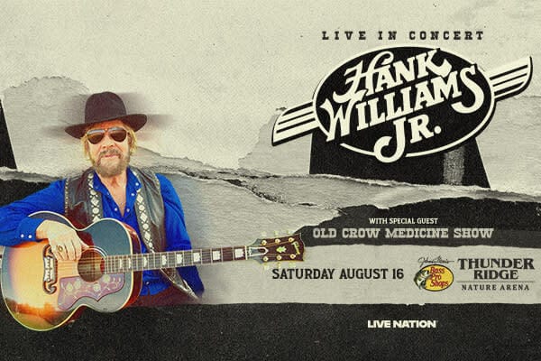 See country fan favorite Hank Williams Jr. live in concert with special guest Old Crow Medicine Show at Thunder Ridge Nature Arena!